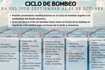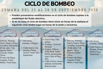 Informamos a toda la comunidad el cronograma actualizado del ciclo de bombeo de agua para la semana del lunes 15 al domingo 21 de septiembre. Invitamos a todos a revisar la programación de su sector y a tener en cuenta las importantes indicaciones sobre el servicio. A continuación, presentamos la Leer más