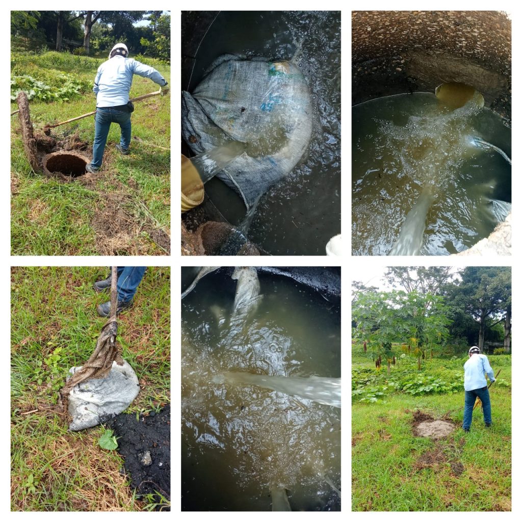 - Obstrucción Removida: En uno de los pozos (manholes) se encontró un trapo y un saco lleno de arena que estaban obstruyendo y dificultando el paso de las aguas residuales. Estos elementos fueron retirados con éxito.
