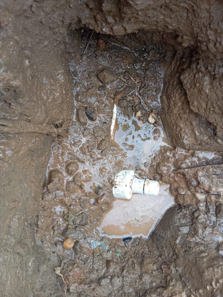 Como se evidencia en la imagen, se encontró una acometida no autorizada conectada directamente a nuestra red principal, sustrayendo agua potable de manera ilegal. Se procedió de inmediato a desmantelar dicha conexión.
