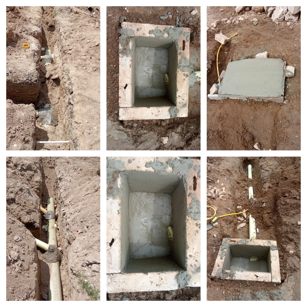 - La construcción de la caja de registro domiciliaria en mampostería y concreto, asegurando la correcta inspección y funcionamiento del desagüe.